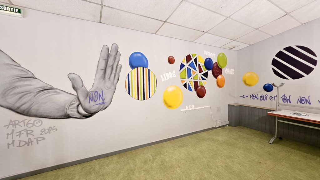 -3ème et 4ème jours réalisation de 2 fresques sur cette thématique (une intérieure et une extérieure) dans les locaux de la MFR.